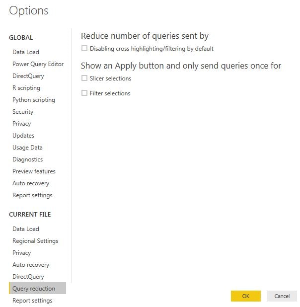 1. With Direct Query, data is not stored in the PBIX file so there is not to place any schedule refresh. However on-premise gateway is required in order to establish a connection with the data source. 2. In Nov 2017, the Query Reduction feature has been added to Power BI Desktop. This helps to reduce traffic and improve the connection method exponentially. This allows enabling an “Apply Button” and sends the query to the database only once. Before this method, Query to the database was sent on each selection.